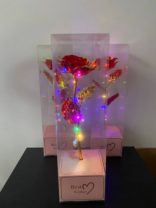 ВИСОКА 40СМ!Златна роза Golden Rose 24k Rainbow, LED Лента, Светеща, Кутия