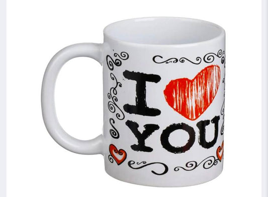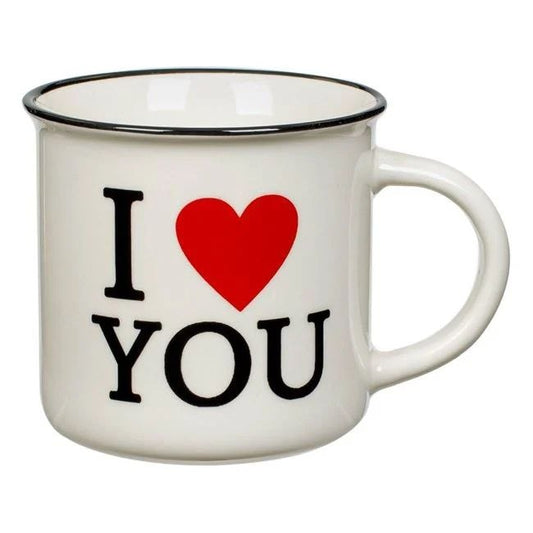 5euro!Керамична чаша, бяла със сърца и надпис „I Love You“, 340 мл