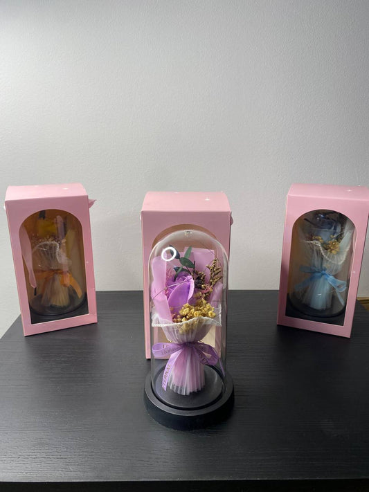 Вечна Роза в Купол с LED лампички в подаръчна кутия