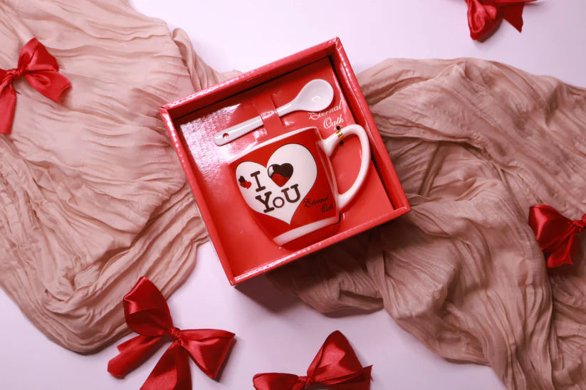 Ароматен букет от вечни рози + Керамична чаша с лъжица, със сърца