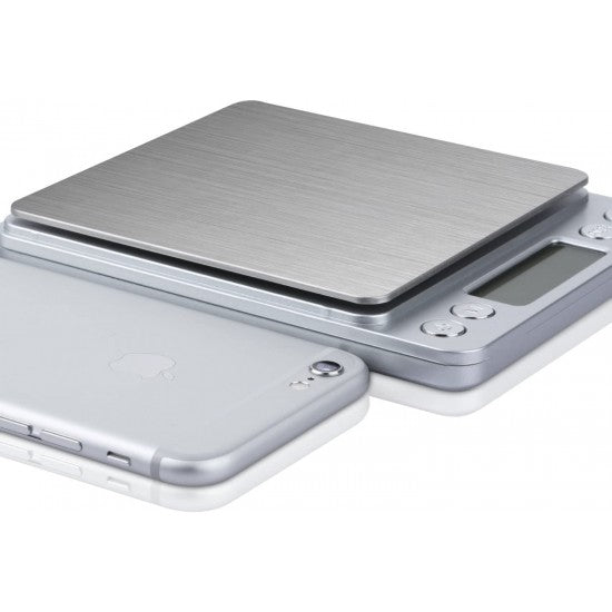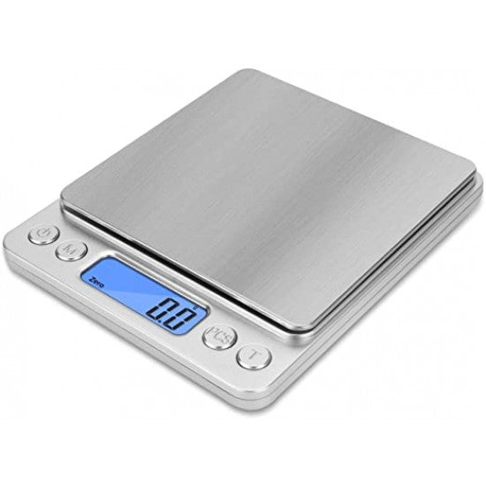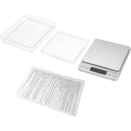 Прецизна бижутерска електронна везна 500-2000 грама с висока точност и LCD екран със синя подсветка. Изключително стабилна при работа, с повтаряемост на резултатите от измерване. Има и функция тариране (нулиране) и избор на мерни единици. Работи с 2бр. батерии ААА (включени в комплекта) и автоматично се самоизключва след 30 секунди. Има защитна капачка, която служи и като тавичка за измерваните изделия. Максималния капацитет на везната е 500г с точност до 0.01г или 2000г с точност до 0.1г.