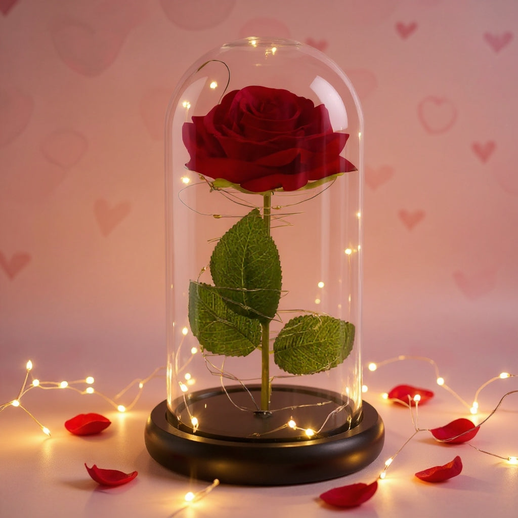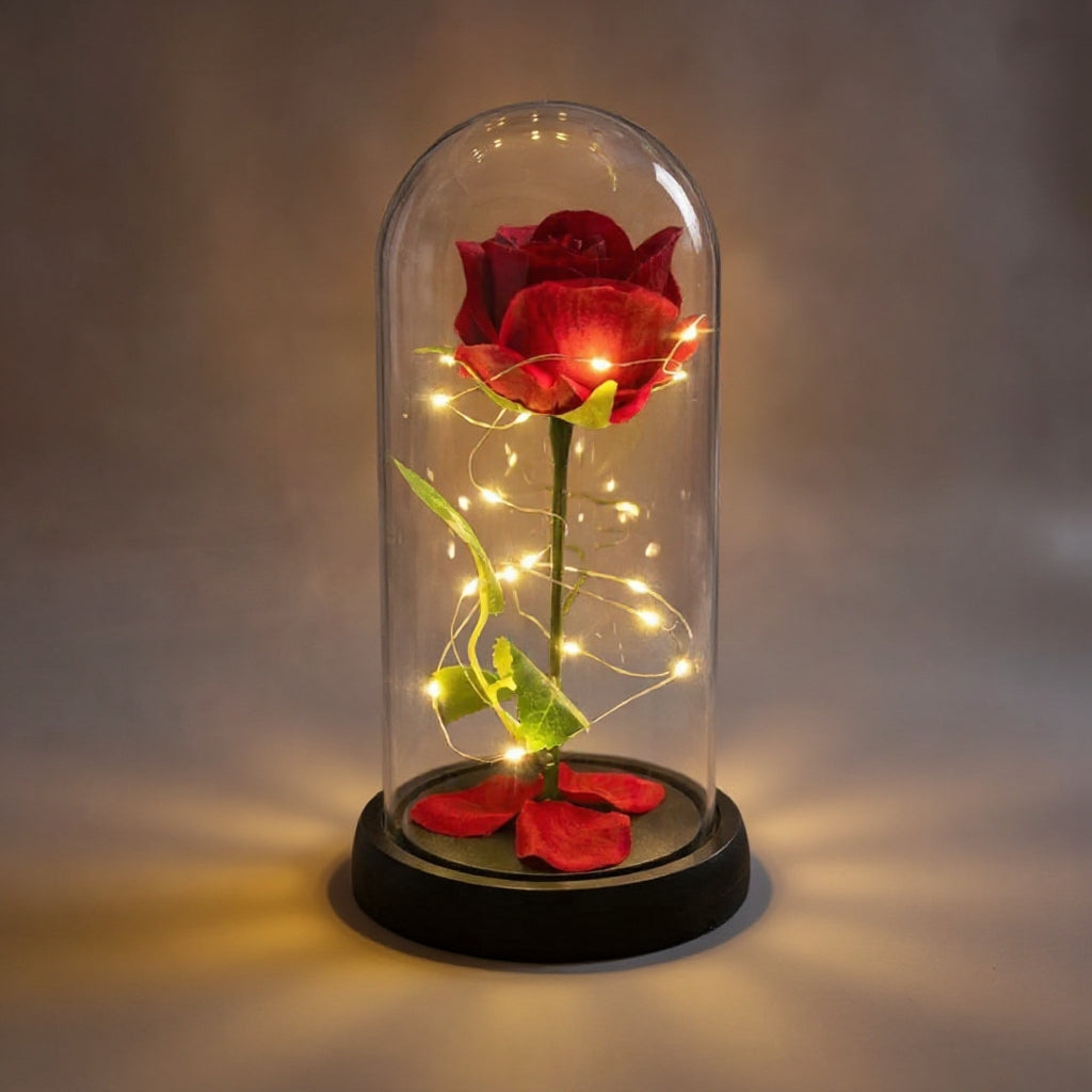 Вечната роза в стъкло с илюминация е един нетрадиционен подарък, който не само ще зарадва окото с чара си, но и ще разтопи сърцата.