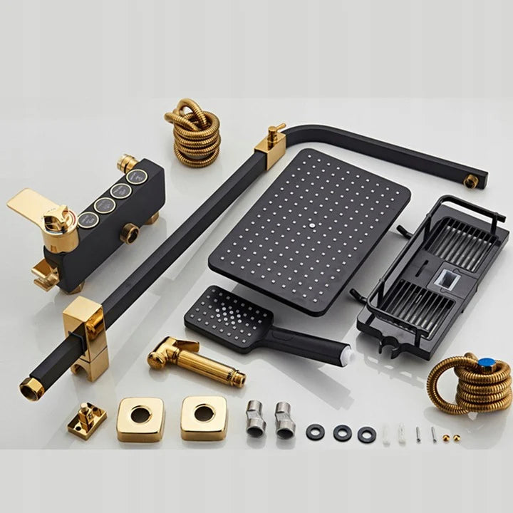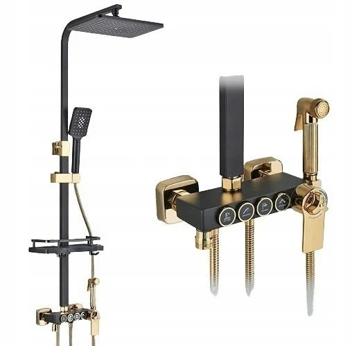 Като се има предвид нарастващата популярност на златния цвят в днешната баня, той не може да липсва в модерното душ пространство. Всички смесители, с които оборудваме банята си, трябва да са в хармония помежду си по форма и цвят. Ако решим да изберем модните напоследък златни акценти, те ще се появят и в дизайна на златната душ батерия. Модерната форма на душа чудесно подчертава присъствието на това удобно допълнение. .