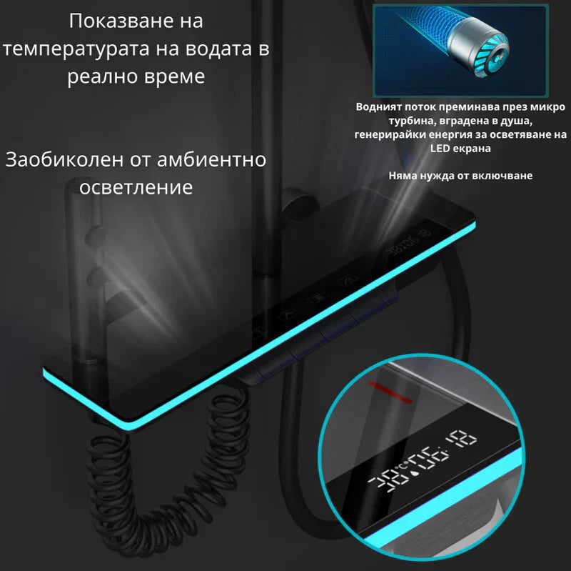 Интелигентна душ колона, управление на пиано, 4 режима на пръскане, въртене на 360°, технология за въздушно пръскане