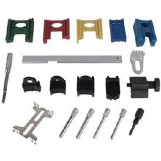 Комплектът съдържа набор от синхронизатори за разпредетелителни и колянови валове, маховици и обтяжни ролки за различни марки. Комплектът е универсален и се използва при различни модели от марките: Ford, Honda, Land Rover, Rover, VW, Renault, Citroen, Peugeot, Fiat, Vauxhall/Opel. Позволява блокирането на газоразпределителният механизъм при смяна на ремъци и др.