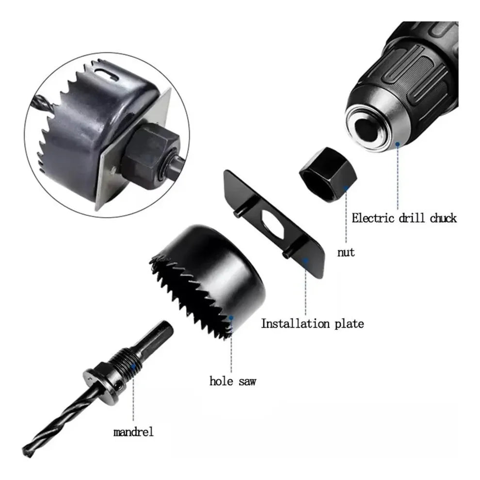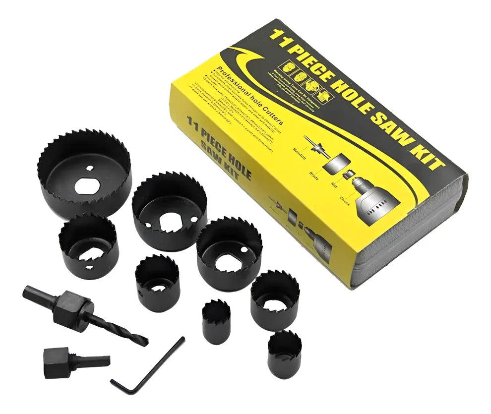 Комплект от 11 части боркорони за дърво и гипс, 19 мм до 64 мм