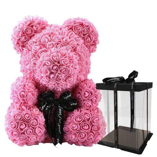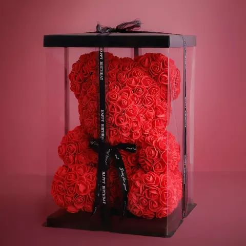 Мече от рози 40 см с подаръчна кутия