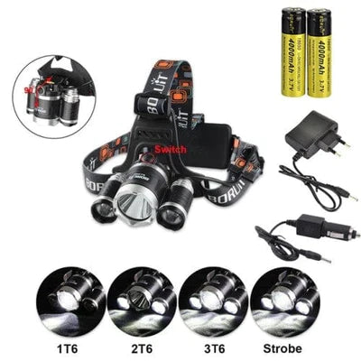 Мощен троен LED Челник RJ-3000 + Подарък Led джобен фенер с 3 режима