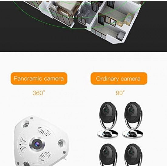 Панорамна 360 ° WIFI IP камера с ултрависока 3MPX резолюция, вграден микрофон и слот за MicroSD карта до 128GB. Устройството позволява да обхванете ъгъл до 360°. Възможност за отдалечено видеонаблюдение през мобилно устройство с iOS и Android.