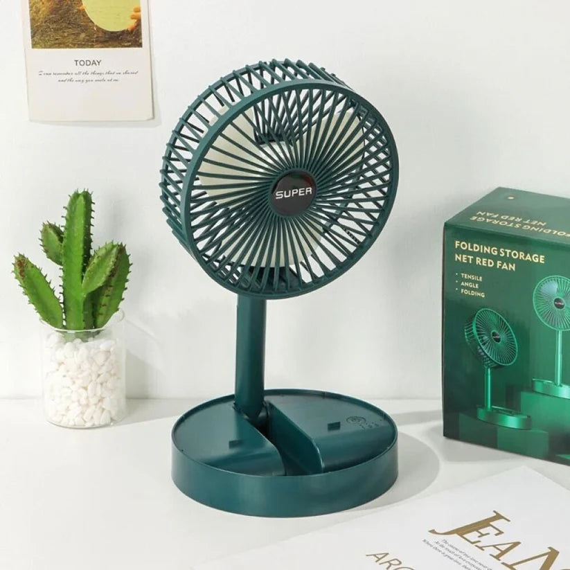 Този компактен и сгъваем USB вентилатор е идеалното решение за прохлада у дома, в офиса или по време на пътуване. Благодарение на вградената акумулаторна батерия и възможността за зареждане чрез USB, ще се радвате на свеж въздух навсякъде и по всяко време – без нужда от кабели или мрежово захранване.