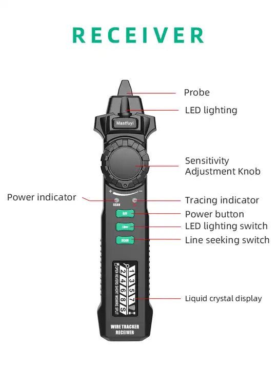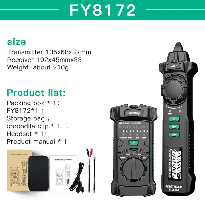 Нашата иновативна система за намиране и проследяване на кабели представя надежден и лесен начин за работа с кабели, осигурявайки точни и бързи резултати. Снабден с LCD екран и множество функции, уредът е идеален за професионалисти в областта на телекомуникациите и електричеството. Основни Характеристики: Широк Обхват на Предаване: Уредът има възможност за предаване на сигнал до 300 метра, което позволява ефективно проследяване на кабели в големи обекти или на открито. Безопасност при Работа: С максимално допустимо постоянно напрежение от 60V, уредът осигурява безопасност при работа, предпазвайки потребителя от евентуални рискове. PoE (RJ45/RJ11) Проследяване: Уредът е оборудван с функционалност за проследяване на PoE кабели (Power over Ethernet) както за RJ45, така и за RJ11 кабели, което го прави универсален за различни видове мрежови връзки. Многопластов Проследяване: Поддържа проследяване на обвити екранирани мрежови кабели, както и тест на телефонни кабели, предоставяйки изчерпателна функционалност за различни сценарии. Идеален за ежедневни и специфични нужди в телекомуникациите и електротехниката, този преносим уред за намиране на кабели комбинира прецизност и удобство в едно. Станете по-ефективни в работата си, намирайки и проследявайки кабели с лекота и сигурност. Батерия (не е включена): 6F22/9V*2 (батерията не е включена) Предавател размери: 135mmx68mmx37mm Приемник размери: 192mmx45mmx 33mm