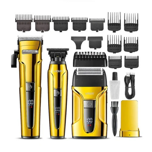 Професионален комплект 3 в 1 в два цвята ( златист ) - Машинка за подстригване, тример и електрическа самобръсначка VGR Voyager Professional V-694 Rechargeable Combo Kit