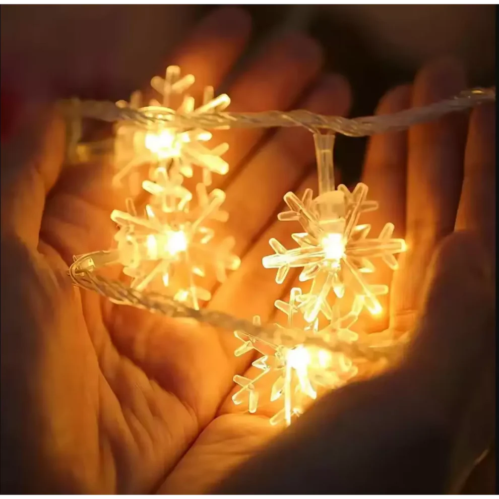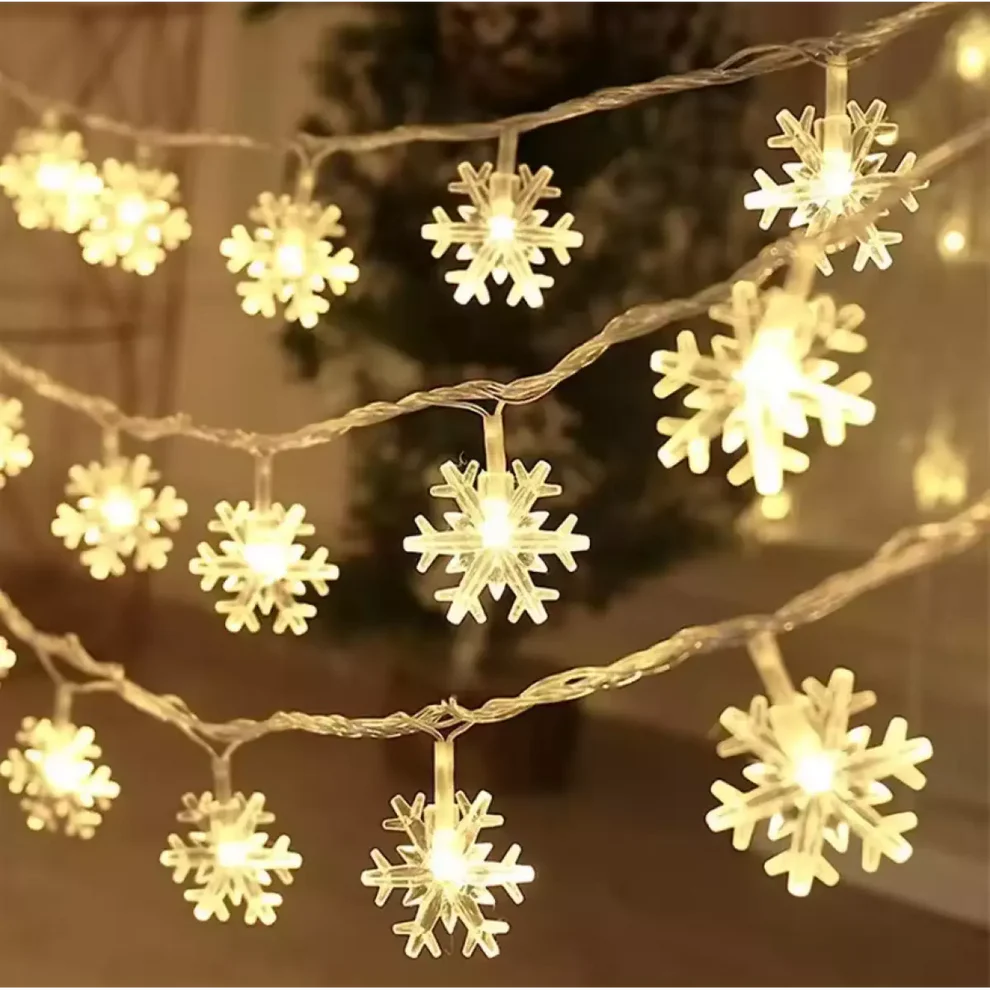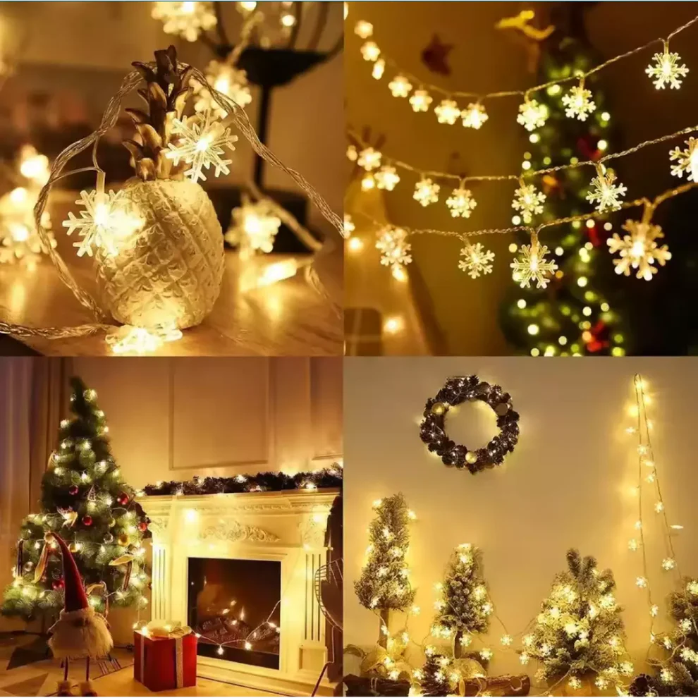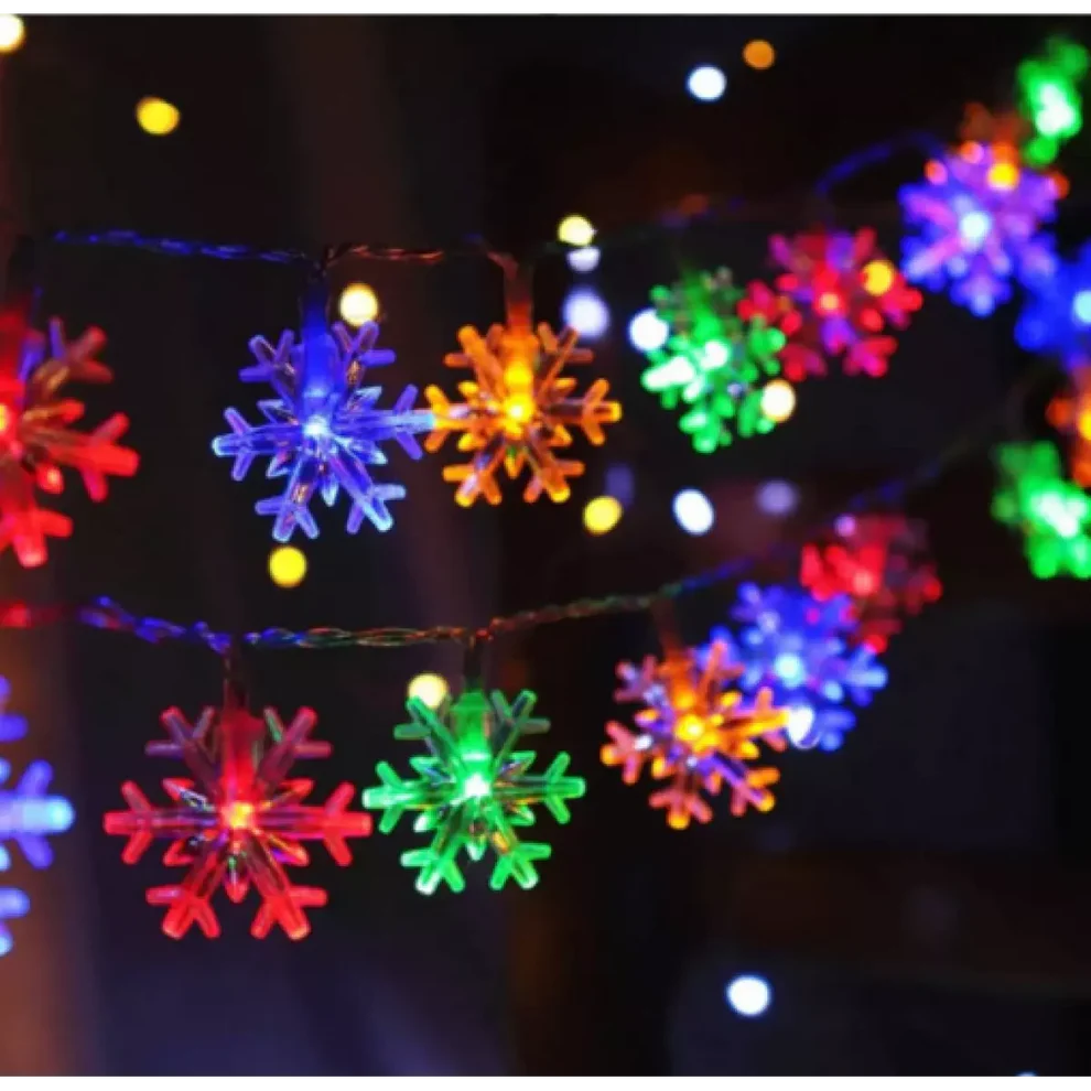 Със своите изящни снежинки, гирляндът е идеален за украса на коледната елха, прозорци, врати, стени или градински площи, като същевременно допринася за уникалната и празнична визия на всяко пространство. Лесен за инсталиране и с дълготрайна конструкция, този гирлянд съчетава красота и функционалност, превръщайки всяко събитие в незабравимо изживяване. Независимо дали искате да добавите цветни акценти или топъл блясък, този гирлянд ще освети вашето пространство със стил и чар.