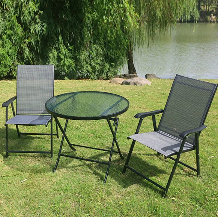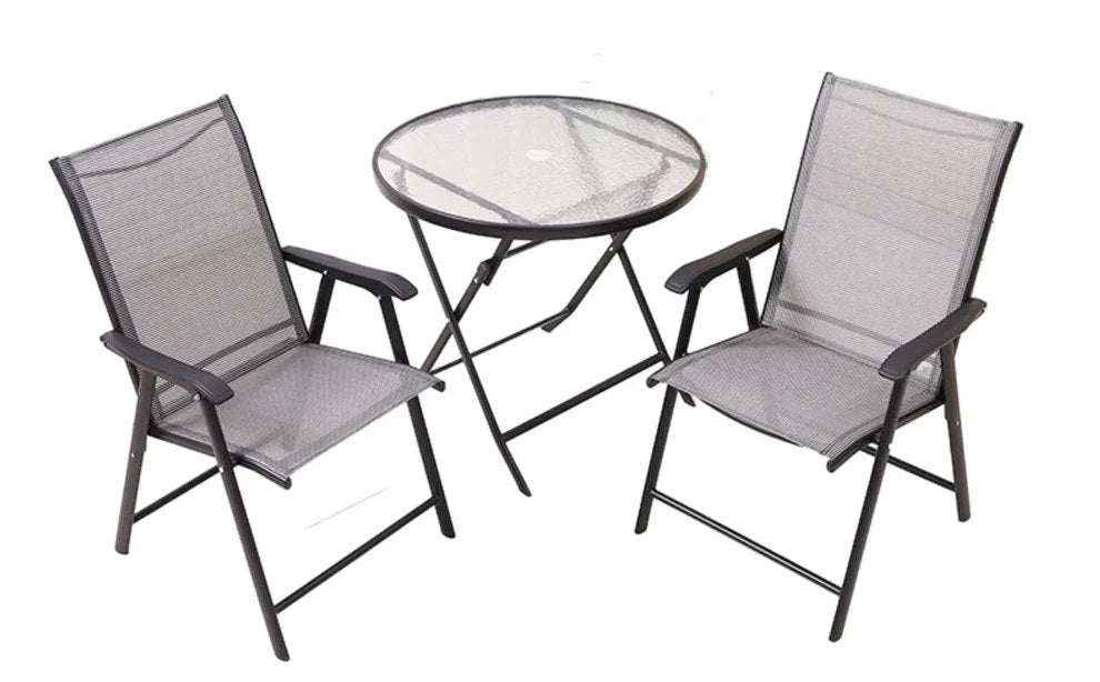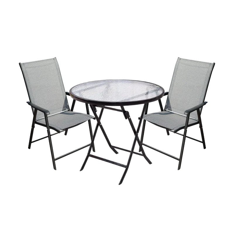 Добавете елегантност и комфорт към вашето външно пространство с този изискан градински комплект, включващ два сгъваеми стола и една сгъваема маса. Създаден с внимание към детайлите, този сет е перфектният избор за всяка градина, тераса или двор, като съчетава стил и функционалност. Основни характеристики: Здрава конструкция: Металната рамка с алуминиева подсилка осигурява издръжливост и стабилност, за да ви служи дълго време. Размери на столовете: 45x58x81 см – удобни и подходящи за всяко външно пространство. Размери на масата: Диаметър 60 см и височина 70 см – идеални за малки и средни пространства. Качествени материали: Седалките на столовете са изработени от текстилен 2x1, а масата е с темперирано стъкло, което гарантира безопасност и дълготрайност. Практичност и мобилност: Сгъваемият дизайн на масата и столовете осигурява лесно съхранение и преместване, което ги прави удобни за всякакви нужди. Прахово боядисано покритие: Осигурява защита срещу атмосферни влияния и е подходящо за външна употреба. Товароносимост: Столовете издържат до 120 кг, а масата до 60 кг, което ги прави подходящи за разнообразни нужди. Насладете се на качествени моменти на открито с този практичен и стилен градински сет, който ще придаде още повече уют на вашето външно пространство.
