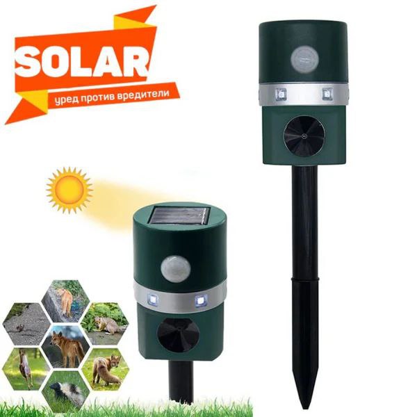 Соларен ултразвуков уред за прогонване на вредители – сензор за движение, 360° LED светлини