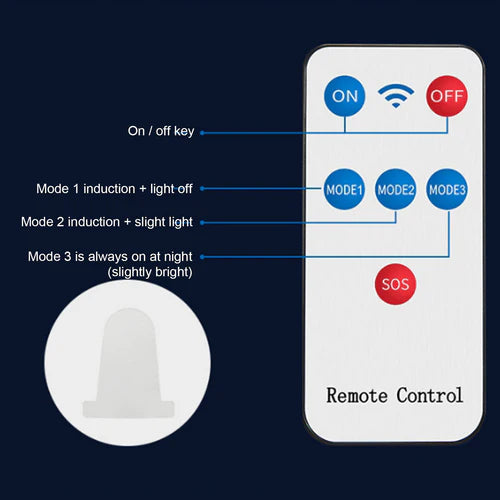 - Превключване на режимите: Продължително натискане 3 секунди, за да включите светлина, кратко натискане 1 секунда, за да превключите режимите;