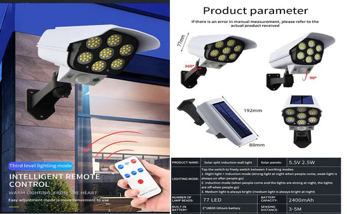 Соларна лампа - имитираща камера за видеонаблюдение 2бр.