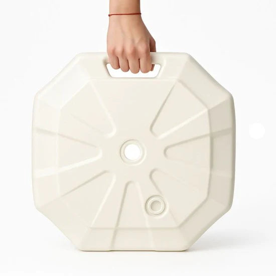 Тази стойка за градински чадър осигурява здрава и стабилна основа за вашия чадър. Изработена от устойчива конструкция, тя гарантира дългогодишна употреба. Монтажът е лесен и удобен – само с едно завъртане поставяте чадъра и го фиксирате здраво на място. Подходяща е за всяко външно пространство и се предлага в елегантен бял цвят.