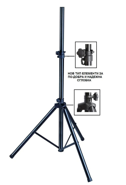 Здрава триножна стойка за всяка активна тонколона - осигурява перфектна чуваемост/акустика.
