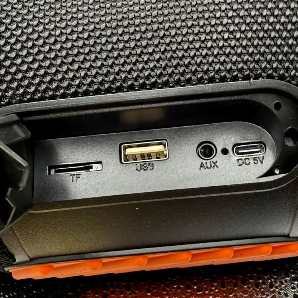 Колоната поддържа няколко източника на възпроизвеждане: Bluetooth, USB, AUX и TF карта. Има вграден микрофон за телефонни обаждания и LED подсветка.