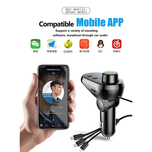 FM Трансмитер Q15 с три кабела за зареждане.