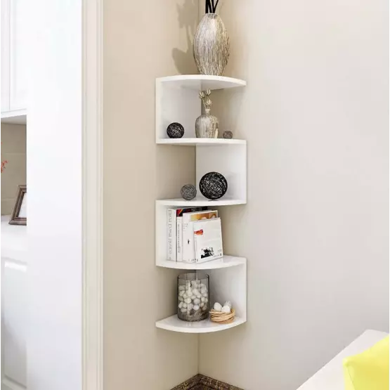 Ъгловата етажерка за съхранение е идеално решение за организиране на книги, цветя, сувенири и т.н. в хола, спалнята, детската стая, офиса или кухнята. Зигзагообразната ѝ форма и извити рафтове я правят подходяща за допълнение към всеки интериор. Благодарение на гладката повърхност, етажерката се почиства и поддържа изключително лесно.